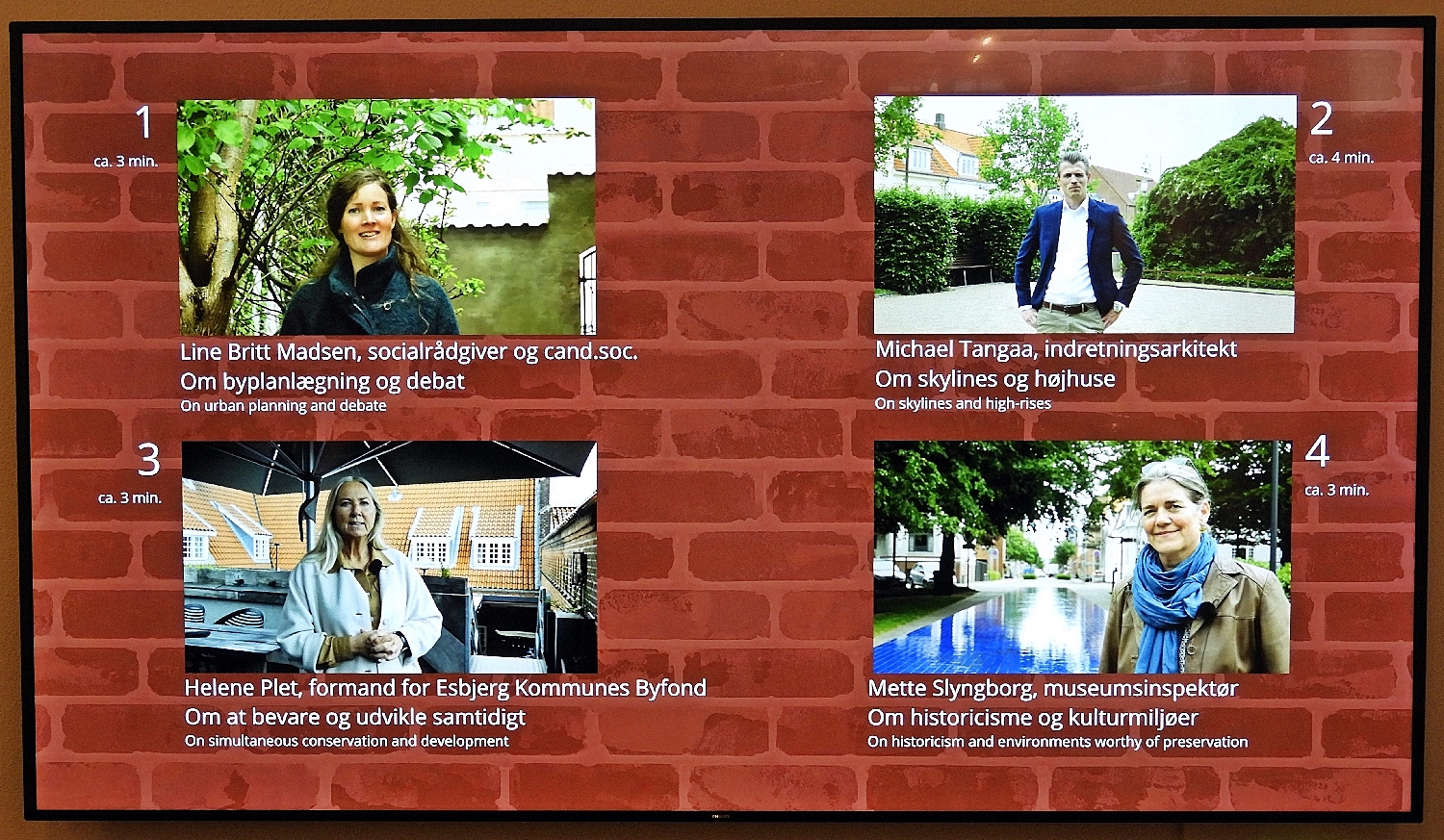 Læs pressemeddelelsenUdstillingen består af fotos, film og tekster og rummer en 3D-printet model af byen, hvis løse elementer gæsterne kan flytte rundt med, så de skaber forskellige by-udtryk. I de korte film deler tre borgere deres syn på byens udvikling.